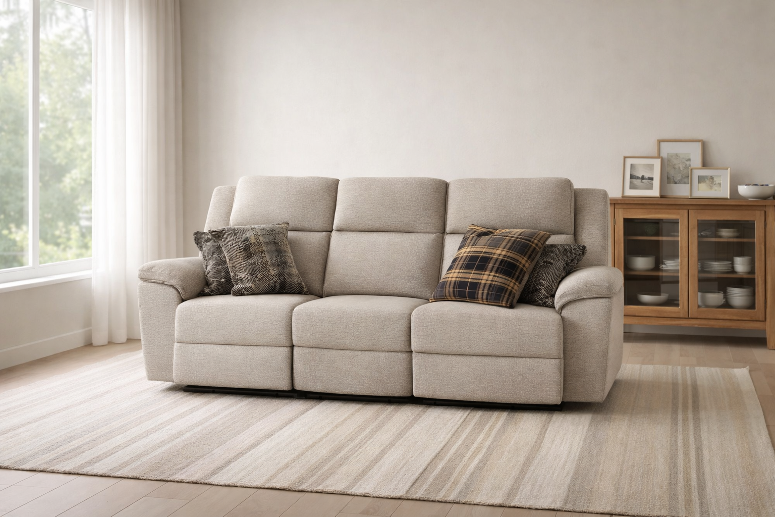 Divano 3 posti in tessuto 210x95x100 cm - beige - per soggiorno - funzione relax reclinabile